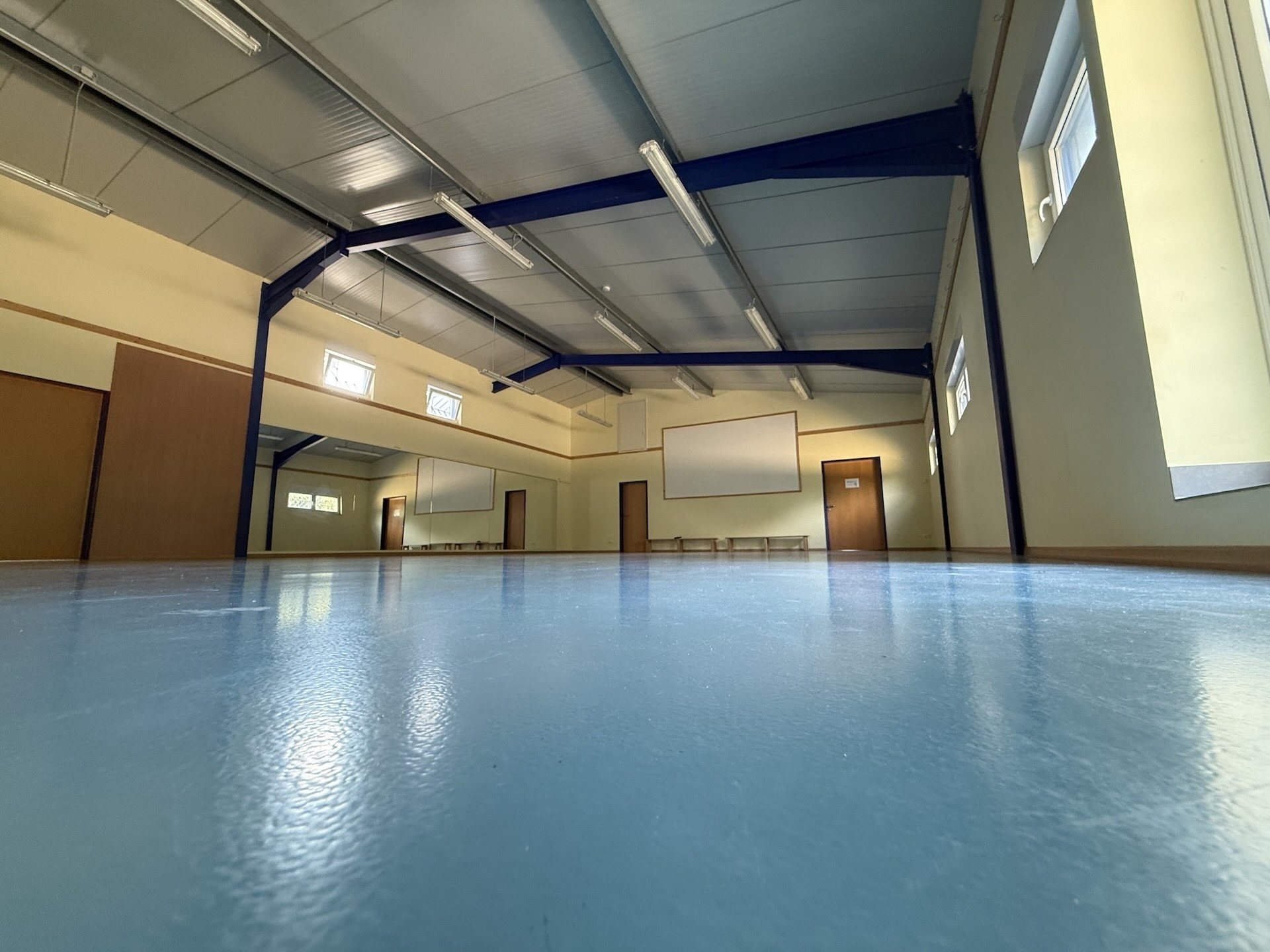 140m2 große Mehrzweckhalle mit Spiegelwand